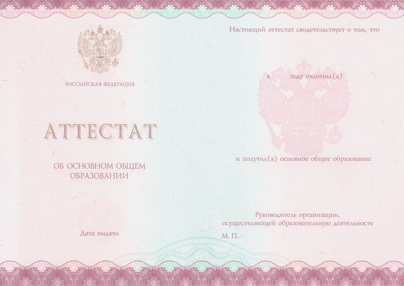 С января 2014 года утверждена новая форма документов об окончании девяти классов средней школы. Аттестат об основном общем образовании 2014-2021 (9 классов) – это документ, который необходим для получения полного среднего или средне -профессионального образования. Заказать аттестат за 9 класс можно в нашей компании по крайне привлекательной цене.