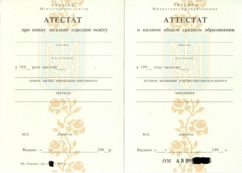 • Документ: Аттестат Украина 11 классов