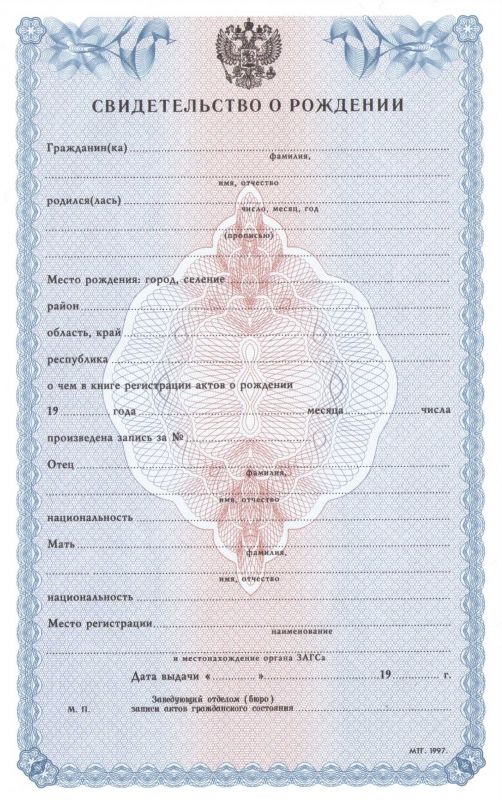 • Документ: Бланк свидетельство о рождении