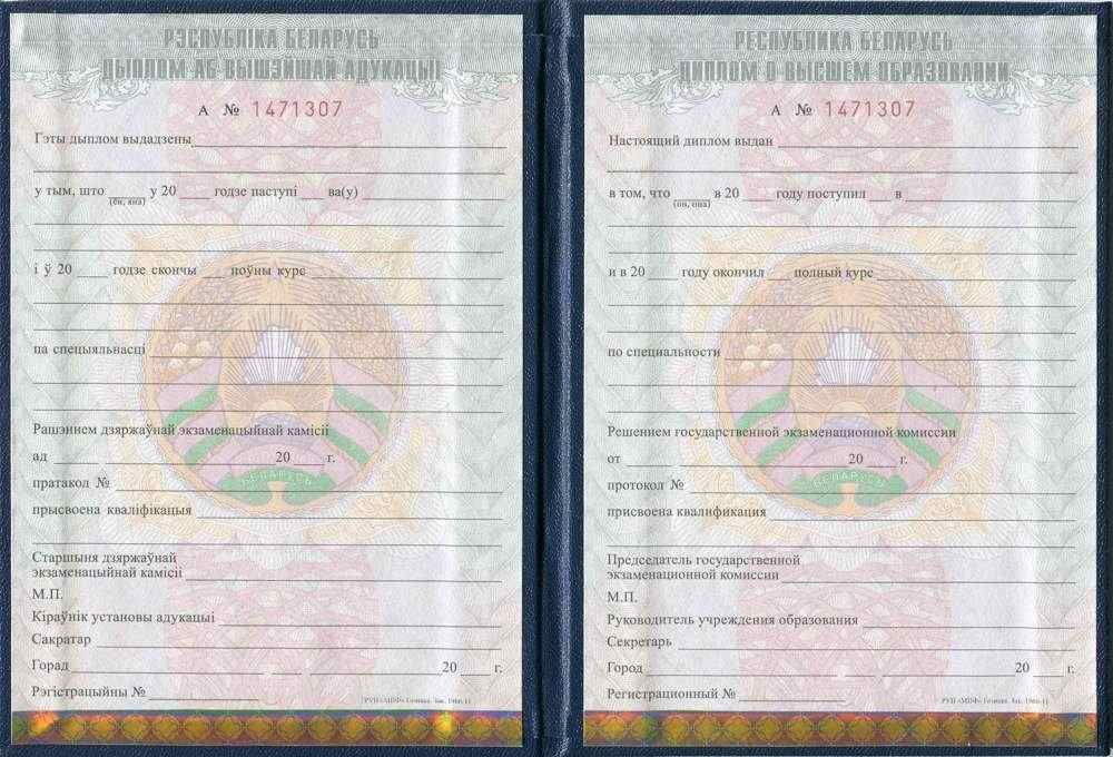 • Документ: Диплом о высшем образовании Беларусь