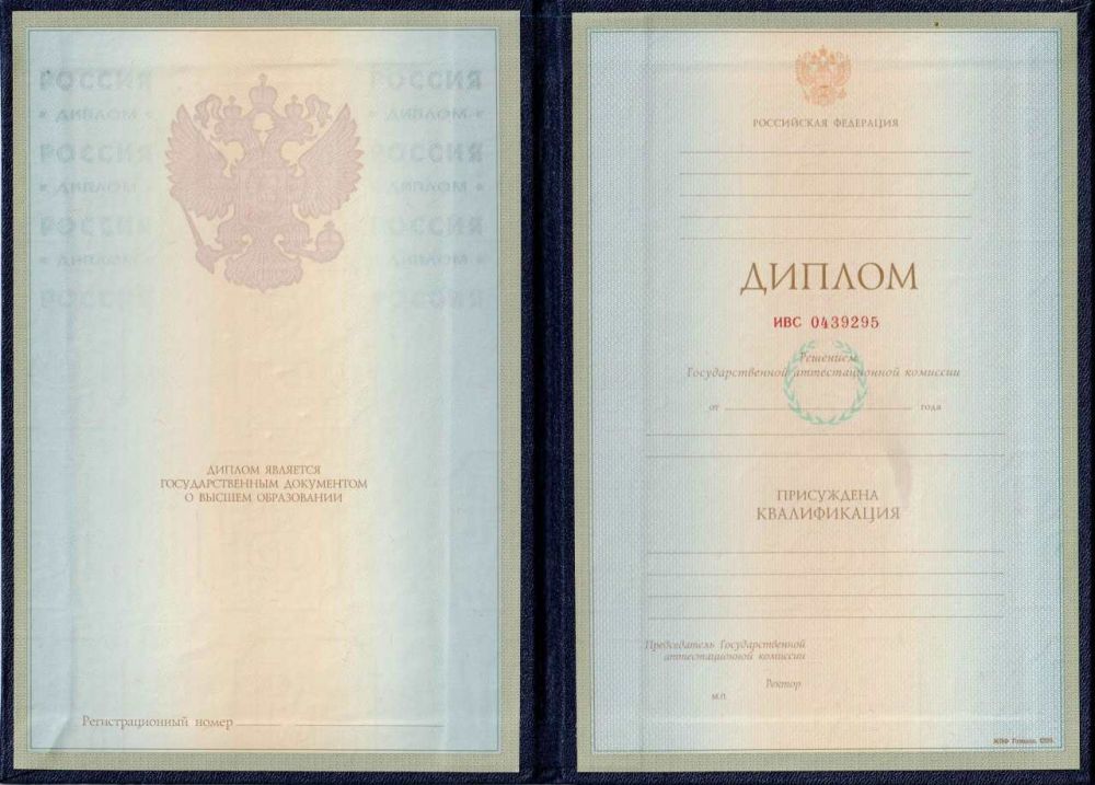 • Дополнительно: К диплому прилагается вкладыш (приложение к диплому), мокрая печать.