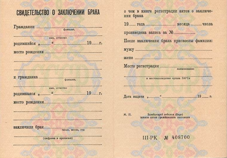 • Документ: Свидетельство о заключении брака РФ
