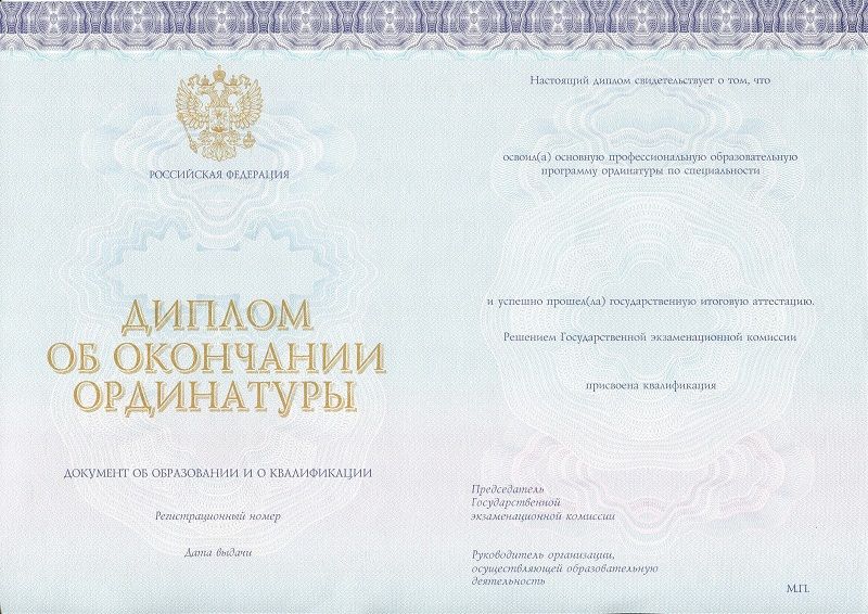 Ординатура – это этап последипломного образования выпускников медицинских высших учебных заведений. Окончившим обучение специалистам выдается удостоверение ординатуры образцов 2005-2012 года, которое является дополнительным документом к диплому о высшем образовании.
